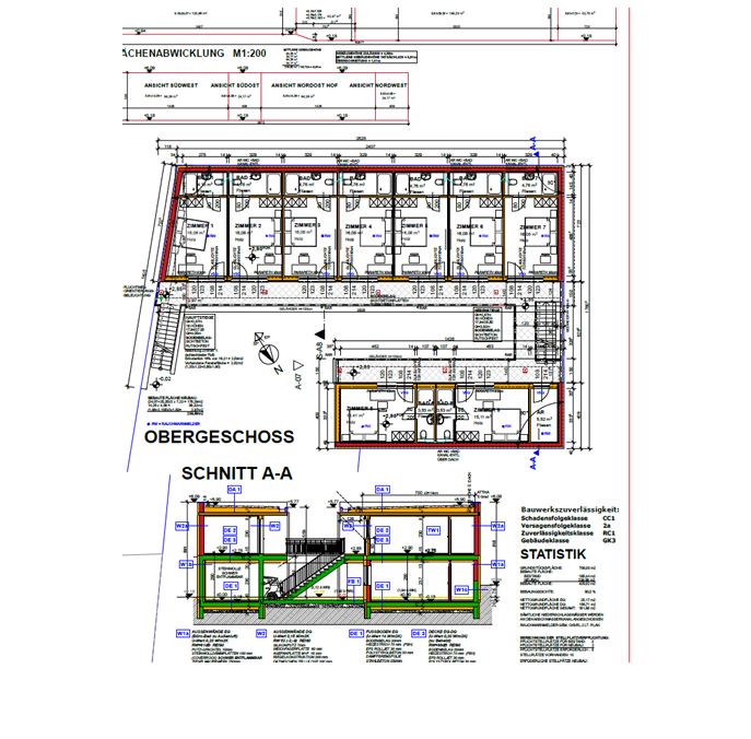 Ausarbeitung aus einem denkmalgeschützen Hauptgebäude und 4 Neubautrakten.