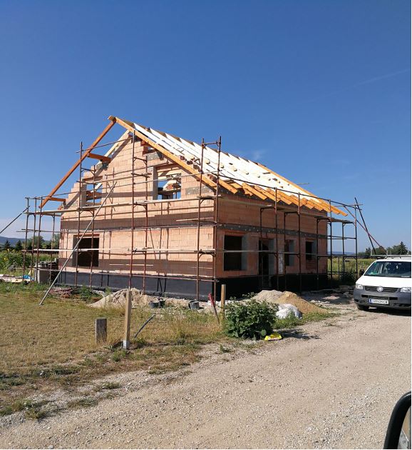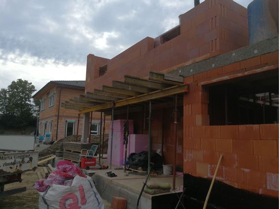 - Neubau wurde auf Stelzen(Stahlbeton) inLeichtbauweise Holzriegelbau realisiert