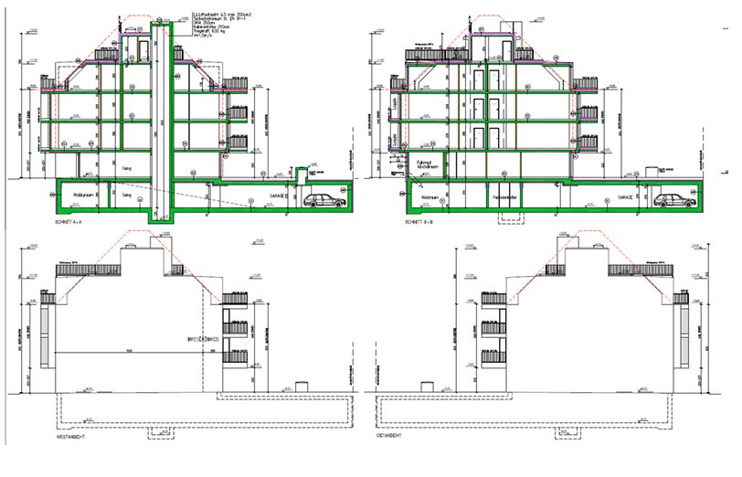 - Neubau von einem Mehrfamilienhaus mit div. Balkonen und Dachterrasse, Lift, Tiefgarage aus Stahlbeton